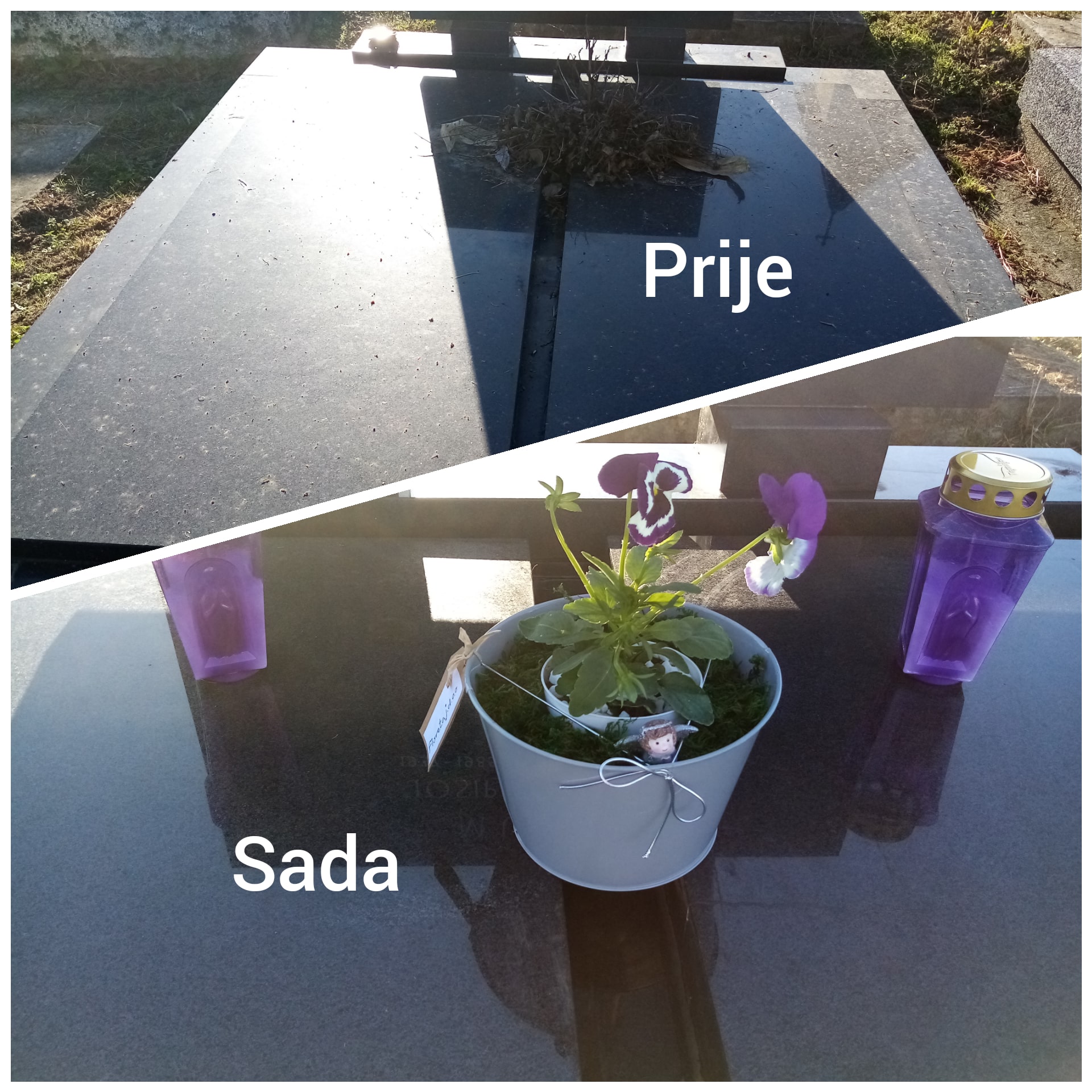Mala obiteljska tvrtka osnovana s ciljem ispunjenja slobodnog vremena fizičkim i kreativnim radom na emotivnoj bazi. Udaljenost grobnica nama dragih osoba potaknula je razmišljanje o pokretanju ovog posla. Odlučili smo pružiti uslugu osobama koje su fizički daleko a mislima i srcem blizu svojih dragih, pokojnih...